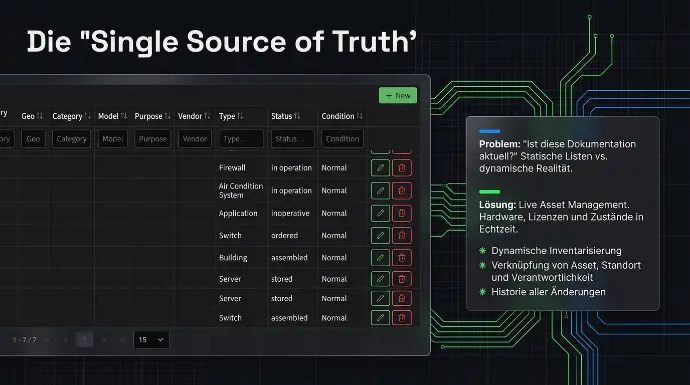 -> Assets, Systeme, Netzwerke – einmal sauber angelegt.